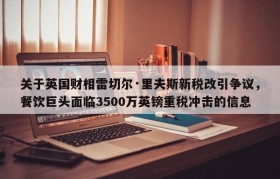 关于英国财相雷切尔·里夫斯新税改引争议,餐饮巨头面临3500万英镑重税冲击的信息