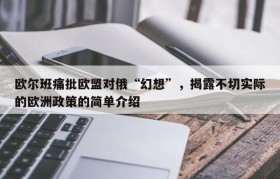 欧尔班痛批欧盟对俄“幻想”,揭露不切实际的欧洲政策的简单介绍