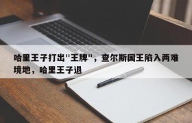 哈里王子打出"王牌",查尔斯国王陷入两难境地,哈里王子退