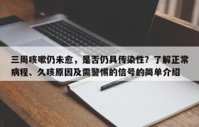 三周咳嗽仍未愈,是否仍具传染性?了解正常病程、久咳原因及需警惕的信号的简单介绍