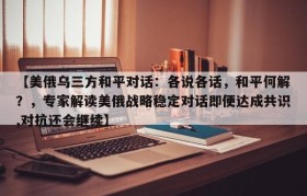 【美俄乌三方和平对话:各说各话,和平何解?,专家解读美俄战略稳定对话即便达成共识,对抗还会继续】