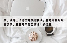 关于威廉王子将主导关键和谈,全力修复与哈里裂痕,王室兄弟有望破冰!的信息
