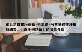 诺贝尔得主玛丽亚·科里纳·马查多这样评价特朗普,引爆全网热议!的简单介绍