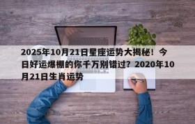 2025年10月21日星座运势大揭秘!今日好运爆棚的你千万别错过?2020年10月21日生肖运势