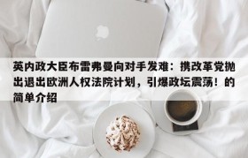 英内政大臣布雷弗曼向对手发难:携改革党抛出退出欧洲人权法院计划,引爆政坛震荡!的简单介绍