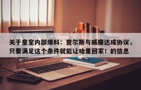 关于皇室内部爆料:查尔斯与威廉达成协议,只要满足这个条件就能让哈里回家!的信息