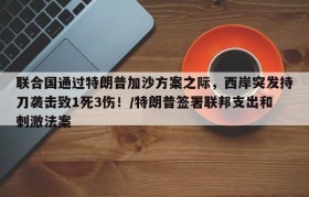 联合国通过特朗普加沙方案之际,西岸突发持刀袭击致1死3伤!/特朗普签署联邦支出和刺激法案