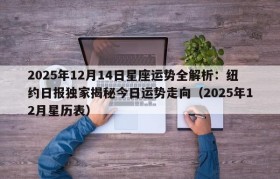 2025年12月14日星座运势全解析:纽约日报独家揭秘今日运势走向(2025年12月星历表)