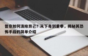 普京如何清除异己?从下毒到重拳,揭秘其恐怖手段的简单介绍