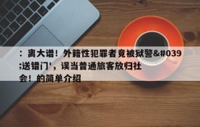 :离大谱!外籍性犯罪者竟被狱警'送错门',误当普通旅客放归社会!的简单介绍