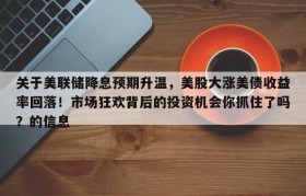 关于美联储降息预期升温,美股大涨美债收益率回落!市场狂欢背后的投资机会你抓住了吗?的信息