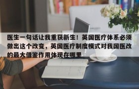医生一句话让我重获新生!英国医疗体系必须做出这个改变,英国医疗制度模式对我国医改的最大借鉴作用体现在哪里