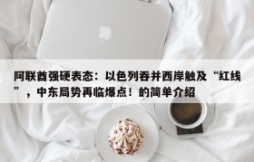 阿联酋强硬表态:以色列吞并西岸触及“红线”,中东局势再临爆点!的简单介绍