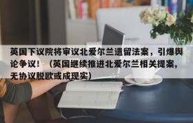 英国下议院将审议北爱尔兰遗留法案,引爆舆论争议!(英国继续推进北爱尔兰相关提案,无协议脱欧或成现实)
