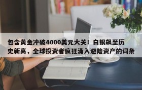 包含黄金冲破4000美元大关!白银飙至历史新高,全球投资者疯狂涌入避险资产的词条
