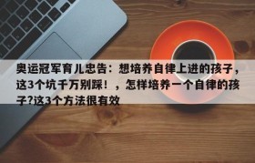奥运冠军育儿忠告:想培养自律上进的孩子,这3个坑千万别踩!,怎样培养一个自律的孩子?这3个方法很有效