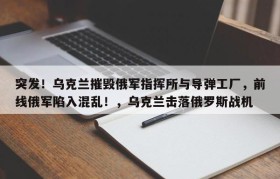 突发!乌克兰摧毁俄军指挥所与导弹工厂,前线俄军陷入混乱!,乌克兰击落俄罗斯战机