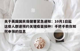 关于英国国民保健署紧急通知:10月1日起这些人群速预约关键疫苗接种!手把手教你如何申领的信息