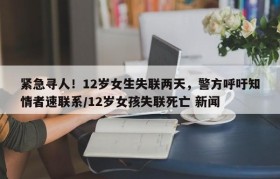 紧急寻人!12岁女生失联两天,警方呼吁知情者速联系/12岁女孩失联死亡 新闻