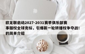 欧足联启动2027-2031赛季俱乐部赛事版权全球竞标,引爆新一轮转播权争夺战!的简单介绍