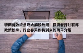 特朗普效应点燃大麻股热潮!投资者押注联邦政策松绑,行业春天即将到来的简单介绍