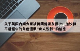 关于英国内阁大臣被特朗普盟友狠批:加沙和平进程中的角色遭讽"痴人说梦"的信息
