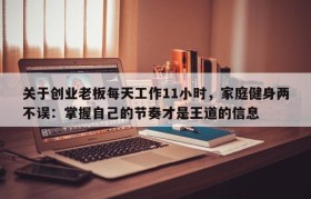 关于创业老板每天工作11小时,家庭健身两不误:掌握自己的节奏才是王道的信息