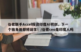 谷歌联手Accel投资印度AI初创,下一个独角兽即将诞生!/谷歌ceo是印度人吗