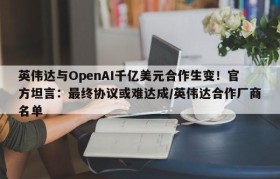 英伟达与OpenAI千亿美元合作生变!官方坦言:最终协议或难达成/英伟达合作厂商名单