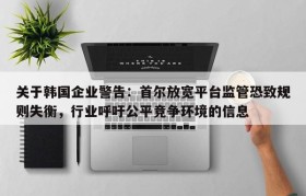 关于韩国企业警告:首尔放宽平台监管恐致规则失衡,行业呼吁公平竞争环境的信息