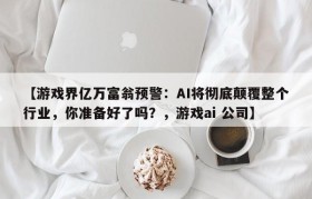 游戏界亿万富翁预警:AI将彻底颠覆整个行业,你准备好了吗?(游戏千亿产业)