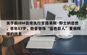 关于前IBM首席执行官路易斯·郭士纳逝世,享年83岁,他曾带领“蓝色巨人”重振辉煌的信息
