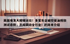 英国爆发大规模诉讼!多家车企被控柴油排放测试造假,丑闻震动全行业!的简单介绍