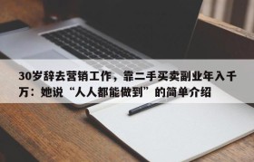 30岁辞去营销工作,靠二手买卖副业年入千万:她说“人人都能做到”的简单介绍