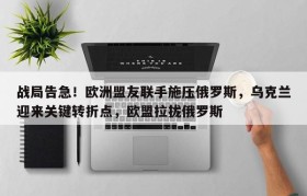战局告急!欧洲盟友联手施压俄罗斯,乌克兰迎来关键转折点,欧盟拉拢俄罗斯