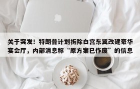 关于突发!特朗普计划拆除白宫东翼改建豪华宴会厅,内部消息称“原方案已作废”的信息