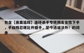 包含【悬案追踪】连环杀手专挑同名女性下手,手段残忍堪比开膛手,至今逍遥法外!的词条