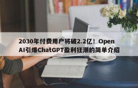 2030年付费用户将破2.2亿!OpenAI引爆ChatGPT盈利狂潮的简单介绍