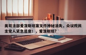美司法部爱泼斯坦案文件神秘消失,众议院民主党人紧急追查!,爱泼斯坦?