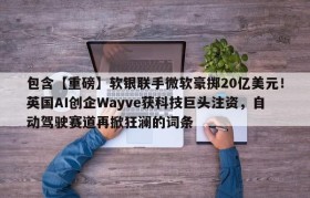 包含【重磅】软银联手微软豪掷20亿美元!英国AI创企Wayve获科技巨头注资,自动驾驶赛道再掀狂澜的词条
