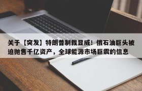 关于【突发】特朗普制裁显威!俄石油巨头被迫抛售千亿资产,全球能源市场巨震的信息