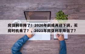 房贷利率降了!2026年前或再迎下调,买房时机来了?,2021年房贷利率降低了?