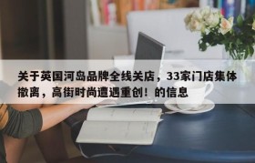 关于英国河岛品牌全线关店,33家门店集体撤离,高街时尚遭遇重创!的信息