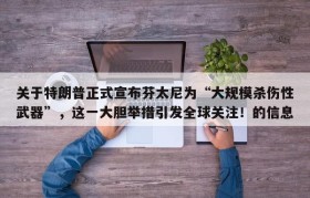 关于特朗普正式宣布芬太尼为“大规模杀伤性武器”,这一大胆举措引发全球关注!的信息