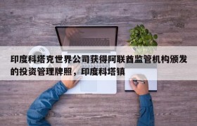 印度科塔克世界公司获得阿联酋监管机构颁发的投资管理牌照,印度科塔镇