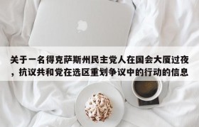 关于一名得克萨斯州民主党人在国会大厦过夜,抗议共和党在选区重划争议中的行动的信息