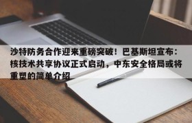 沙特防务合作迎来重磅突破!巴基斯坦宣布:核技术共享协议正式启动,中东安全格局或将重塑的简单介绍