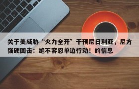 关于美威胁“火力全开”干预尼日利亚,尼方强硬回击:绝不容忍单边行动!的信息