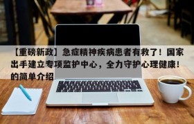 【重磅新政】急症精神疾病患者有救了!国家出手建立专项监护中心,全力守护心理健康!的简单介绍