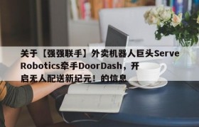 关于【强强联手】外卖机器人巨头ServeRobotics牵手DoorDash,开启无人配送新纪元!的信息